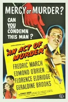 An Act of Murder (also known as Live Today for Tomorrow and I Stand Accused) is a 1948 American film noir directed by Michael Gordon starring Fredric March, Edmond O'Brien, Florence Eldridge and Geraldine Brooks. It was entered into the 1949 Cannes Film Festival.