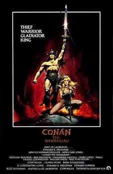 Conan the Barbarian is a 1982 American fantasy film co-written and directed by John Milius. It is based on stories by Robert E. Howard, a pulp fiction writer of the 1930s, about the adventures of the eponymous character in a fictional pre-historic world of dark magic and savagery. The film stars Arnold Schwarzenegger and James Earl Jones, and tells the story of a young barbarian (Schwarzenegger) who seeks vengeance for the death of his parents at the hands of Thulsa Doom (Jones), the leader of a snake cult. Buzz Feitshans and Raffaella De Laurentiis produced the film for her father Dino De Laurentiis. Basil Poledouris composed the music.