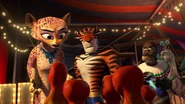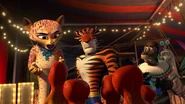 They later dress as butterflies and do a jumping act on trampolines. When they learn that the Four are zoo animals, they are heartbroken along with the other circus animals. Later, in New York, when Skipper learns that the Four have been ambushed by Captain Chantel DuBois, Gia suggests that they should help them but the triplets remind that they lied to them. Later, the triplets agree to help the Zoosters. In the end, the triplets are shown painted in polka-dots like Marty while singing "Afro Circus" with their friends.