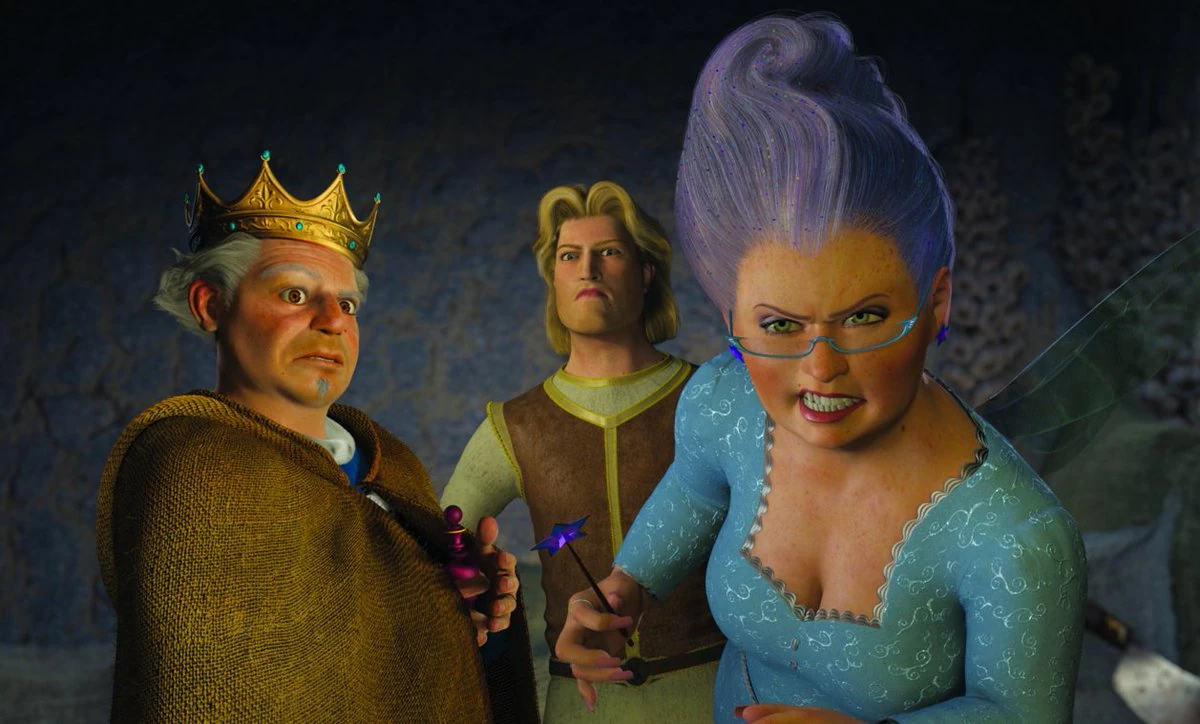 - The Fairy Godmother is the third DreamWorks Animation character to be a female antagonist, following Mrs. Tweedy from Chicken Run and Eris from Sinbad: Legend of the Seven Seas.