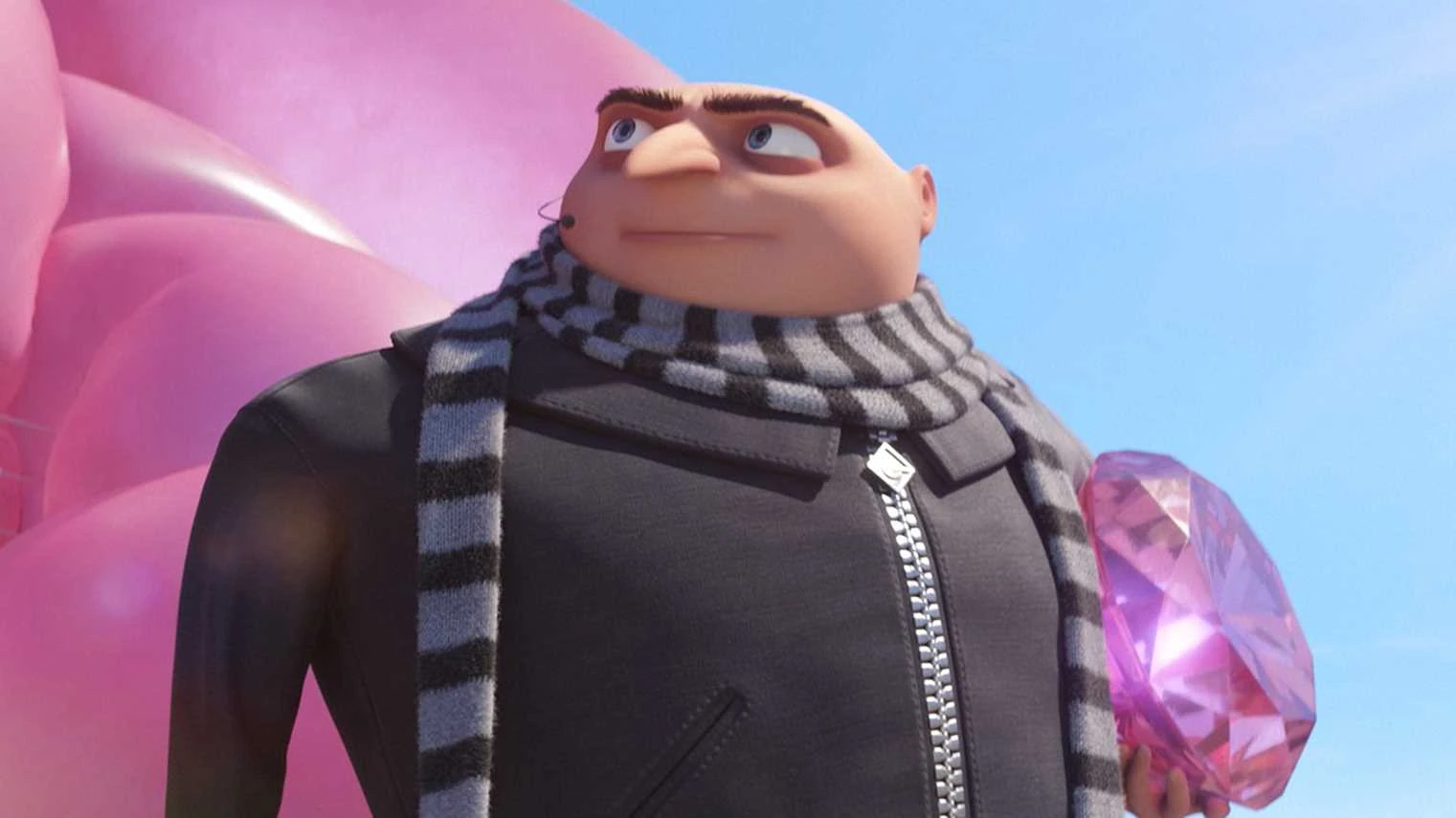 In Despicable Me 3, Gru becomes an agent for the Anti-Villain League. When Balthazar Bratt steals a huge gem, Dumont Diamond, from a ship and is about to flee, Gru and his wife with two minions arrive with their personal submarines to pursue Bratt, which change into water scooters when going out of the water. Lucy then blows a water column throwing Gru to the ship - which is now floating away because of the expanding chewing gum that Balthazar threw.