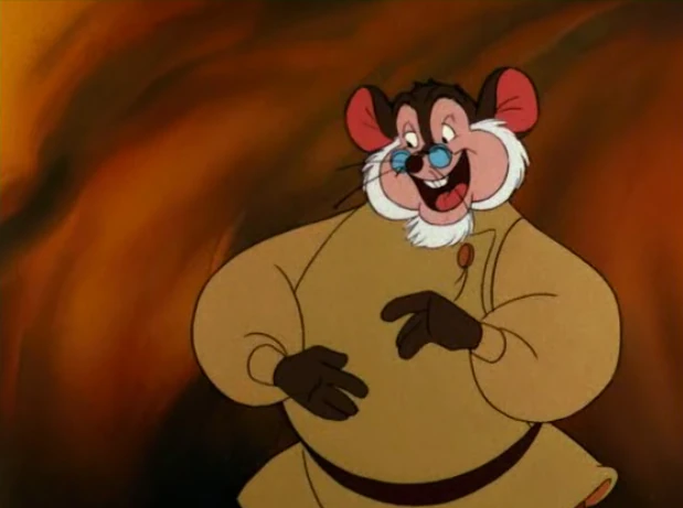 Papa is portly and tall, with a gray beard, tan shirt and brown pants, with small glasses on his snout. After giving Fievel his hat he never wears another one. His appearance changes very little in Fievel Goes West, besides being animated in Amblimation's style rather than Don Bluth's.